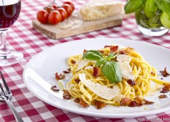 Składniki na 2 porcje: • 200 g makaronu Malma Spaghetti • 100 g pancetty • 2 żółtka • 100 ml...