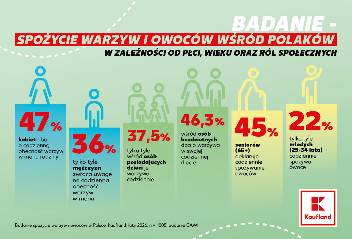 [1] Badanie spożycie warzyw i owoców w Polsce, Kaufland, luty 2026, n = 1005, badanie CAWI